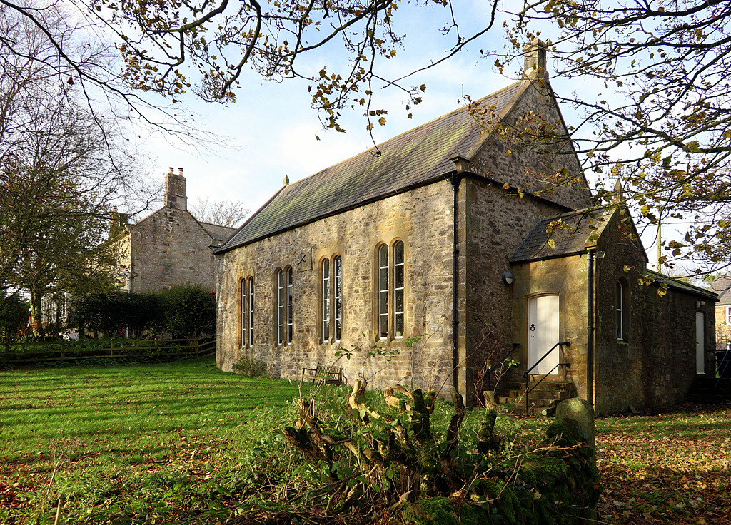 This walk starts in the hamlet of Great Bavington which is a few miles west of Kirkwhelpington just off the A696. This is an interesting spot and before you leave have a look at the church. This is signposted and is directly behind the houses. This is one of the oldest non conformist churches in the country. It came about when the vicar of Kirkharle was ejected from the church because he could not agree with the Act of Uniformity. He set up a church at nearby Ladywell and in the 1690s moved to Great Bavington and this is probably the reason that there is a footpath linking Ladywell to Great Bavington. It is now the oldest Presbyterian church in Northumberland and second oldest in England. Note the road here which is on solid rock. The second house you pass on the left on the way to the church served as a youth hostel in the early 1950s but the information board in the hamlet records that it was closed due to the unseemly behaviour of the visitors!