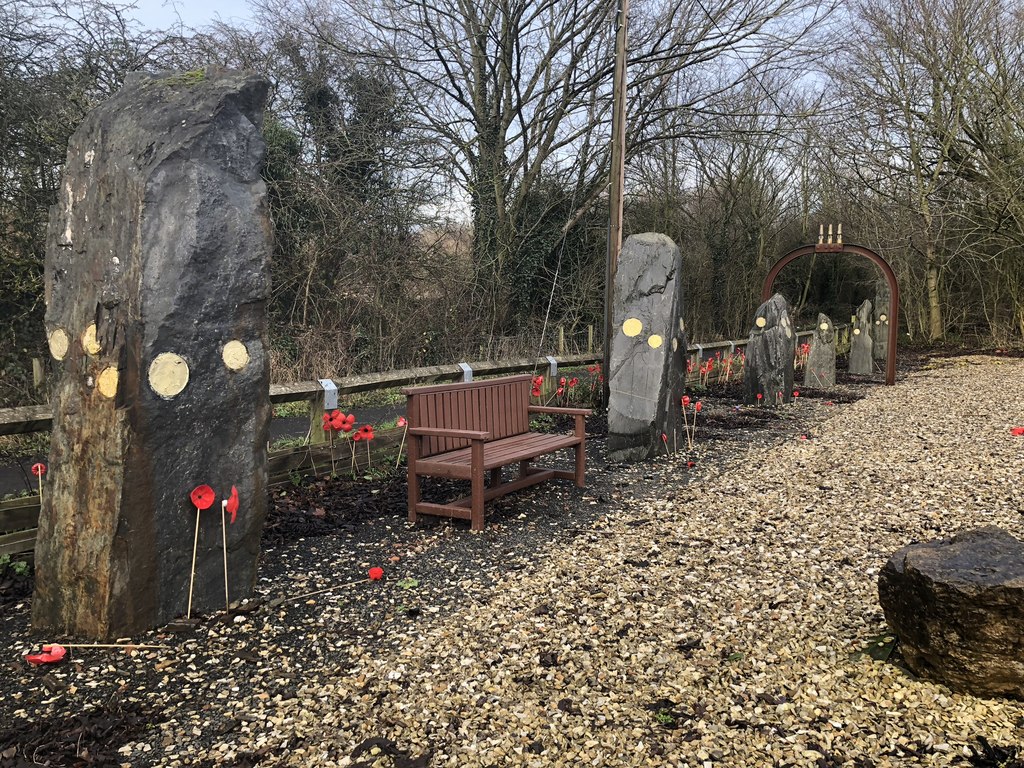 The track reaches the road at the west end of Quarrington Hill and the path directly across the road is taken again through an area of newly planted trees. Follow the footpath, which goes round the back of the houses, and after about 400 yards take any of the paths on the right through the trees and keep south to get to Kelloe, where you emerge onto a housing estate. These houses are designed on a crescent which is followed to the right down to the main road. This is crossed and a footpath through a new iron gate is followed downhill to a footbridge over Kelloe Beck. Here is the trackbed of the old Clarence Railway which transported coal from the area to Port Clarence on the Tees. It is now a good path which is followed east crossing a road and then coming out at an open cemetery site with sculptured artwork relating to the coal mine of East Hetton Colliery. Nearby is a plaque commemorating ten men killed in an inundation of water at the pit. East Hetton was operated from 1837 right up to 1983 and at its peak employed 1100 men and boys. Some of the pits were interconnected and indeed some survivors of the Trimdon Grange Explosion escaped from Trimdon Grange via East Hetton. The sculpture shows a simulated entrance to a mine and the columns are decorated with the miners tokens which were used to know who was in the mine at any particular time. East Hetton operated at a depth of 900 feet. Alan Price of The Animals fame made a popular record of a song written by Tommy Armstrong of Tanfield near Beamish (The Pitman Poet)called “The Trimdon Grange Explosion”. Armstrong’s grave at Tanfield is visited on one of the walks starting at Beamish and versions of this song by both Alan Armstrong and Louis Killen can be found on YouTube. Well worth a listen!