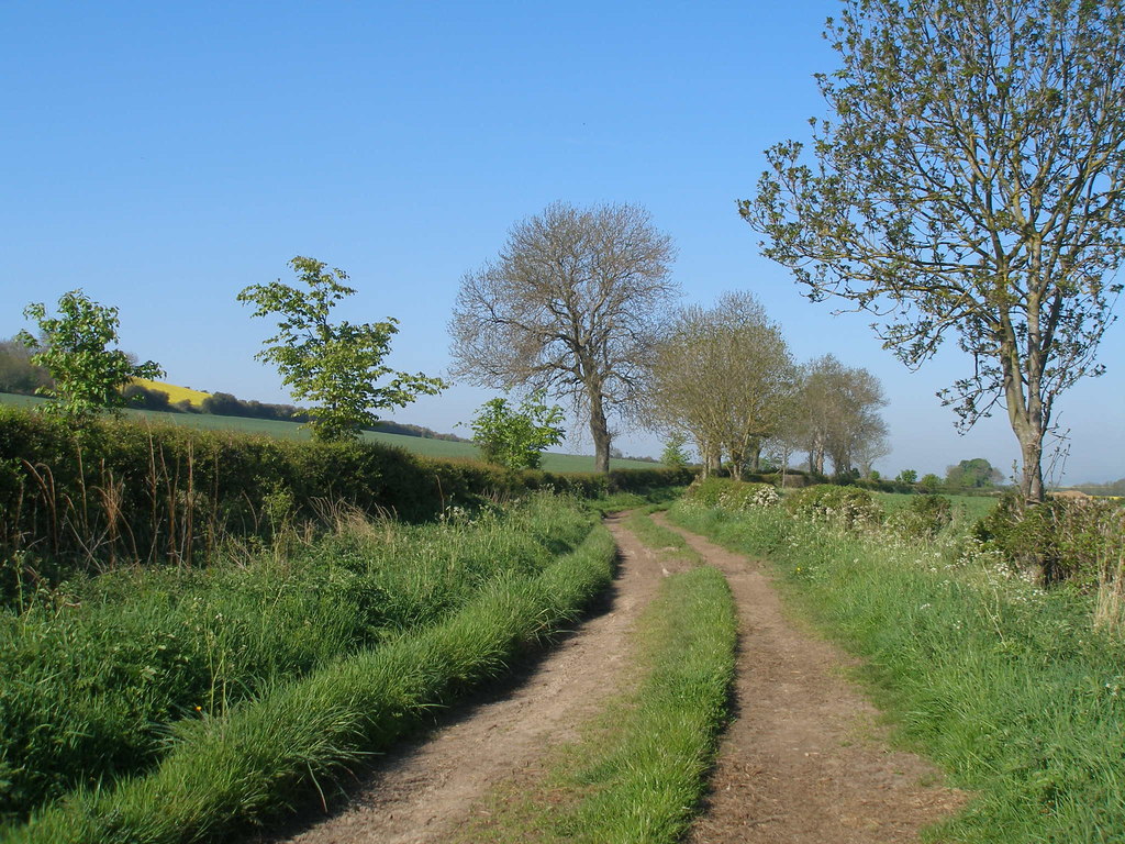 On passing the bridge turn left parallel to the railway on the bridleway known as Wildgoose Lane which will date back to before the area was drained. Proceed in this direction to where the bridleway turns left over the fence line at spot height 77. To the south is a hill leading up to High Grindon and the site of the village was to the right of the bridleway leading to the top of the hill. There is no obvious track or indeed signs of the old village which have been ploughed out.