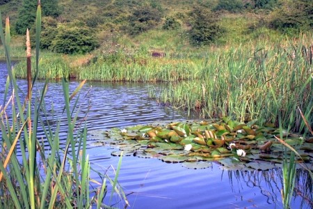 Heading north on the tarmac you now have two choices. After about 400 yards you can take the footpath on the left passing Byers Hill Farm or continue on the road past the farm access road and after a further 100 yards take the bridleway on the left.The latter is my preferred route as it does not involve an up and down! Continue west on limestone grassland to reach the gate at GR 067078. You were at this spot on the way to the Badger Stoop earlier in the walk but now head a little to the left on a clear bridleway onto Barningham Moor. After half a mile this track heads north and for the first time on this walk there is no clear track. It is necessary to head west through heather and bracken and if you are on the right route you will find some concrete waymarks about a foot high. The problem is that they are very difficult to see ahead particularly when the vegetation has grown. Osmaril Gill ahead on your left is particularly good for ancient remains with a stone circle at its head (not passed on this walk). The plateau underneath was the site of a bronze age settlement which is still visible. Keep going west passing the gill and avoiding the bracken and at GR 049083 you will pick up a track coming from Stang Forest at Black Hill Gate. Look here for a large stone with cup and ring markings. Now head north-east along a further plateau. This is a sharp turn to the north and below you is a wall and you will soon pick up a clearish path which gradually descends to a point near to the corner of the wall. Further east is a new lake with an island which has recently been created and is not on all maps, You cross over a small stream marked on the map as aqueduct.